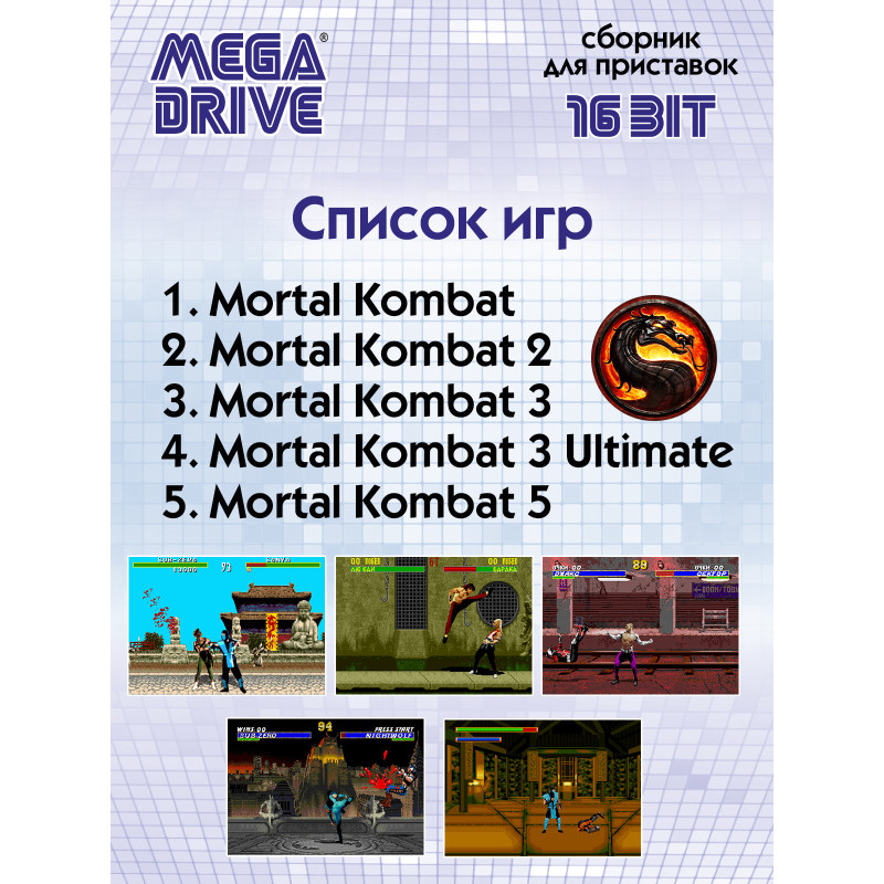 Предлагаем Вашему вниманию очередной сборник, на компактном картридже, для игровой приставки в формате SEGA 16bit. Мы постарались включить в сборник состоящий из 5 игр, тщательно подобранных для самых искушённых любителей аркадных игр, только самое лучшее! Увлекательный и не примитивный игровой процесс, множество бонусных, секретных уровней и пасхалок. На нашем сайте вы без труда найдёте «игровой раздел» в котором есть подсказки, на случай, если Вы «зависли» на каком-то уровне. С появлением на рынке игровой приставки СЕГА c 16, а не 8 битной графикой, в начале 90-х свершился переворот в игровой индустрии и именитые создатели игр такие как: Дисней, Конами, Капком и многие другие - бросили все свои силы на создание игр для этой консоли. Самым приятным моментом стала возможность подключения двух джойстиков к приставке, что позволило сделать игровой процесс ещё более интересными. Играйте и выигрывайте, проверьте свою логику и реакцию в аркадном SEGA-мире!