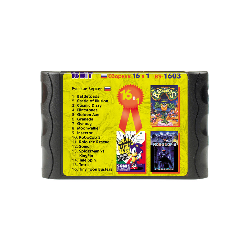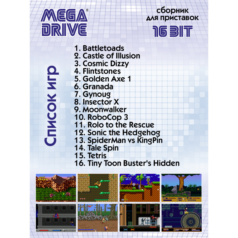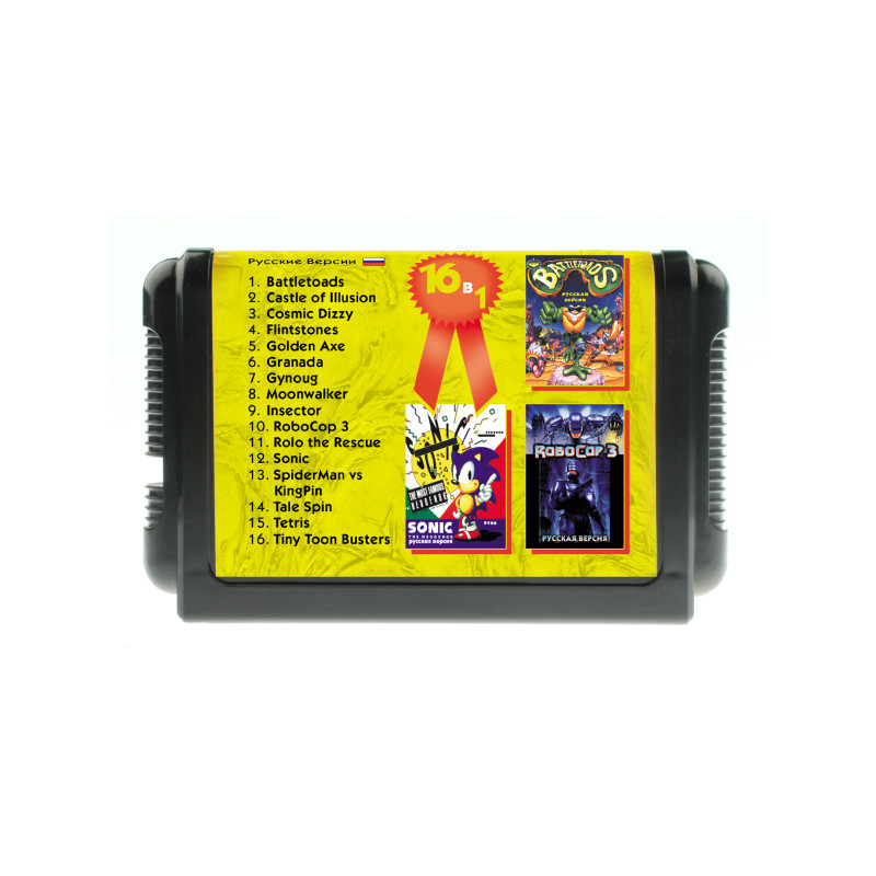 Картридж многоигровка для игровой приставки Sega Mega Drive. Картридж поставляется в защитном футляре и содержит следующие игры: