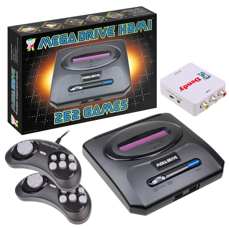корпус с цветными кнопками, разъем для картриджей 16-бит Sega, простое подключение через AV, не требуется дополнительных