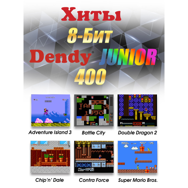 Встречайте ретро приставку Dendy Junior 400 – ваш билет в мир классических игр! Эта компактная игровая консоль порадует любителей 8-битных приключений благодаря 400 встроенным играм, включая самые известные хиты прошлого. Погружайтесь в ностальгические сессии с любимыми персонажами и увлекательным геймплеем.
