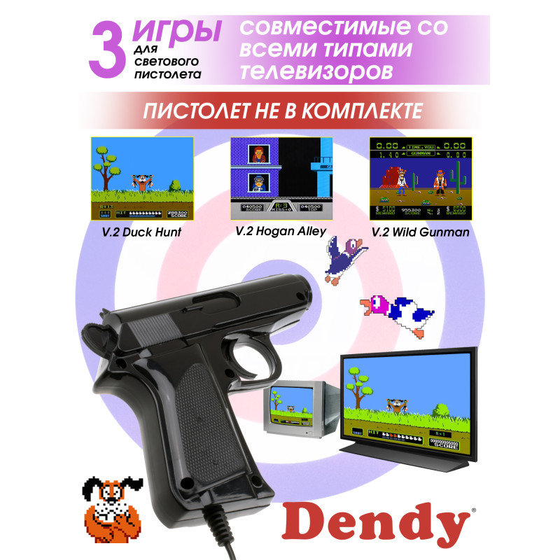 Dendy 400 поддерживает картриджи, что позволяет расширить игровую библиотеку и вновь пережить старые игровые моменты. Dendy 400 поддерживает игровой пистолет, однако учтите, что он не входит в комплектацию этой версии.
