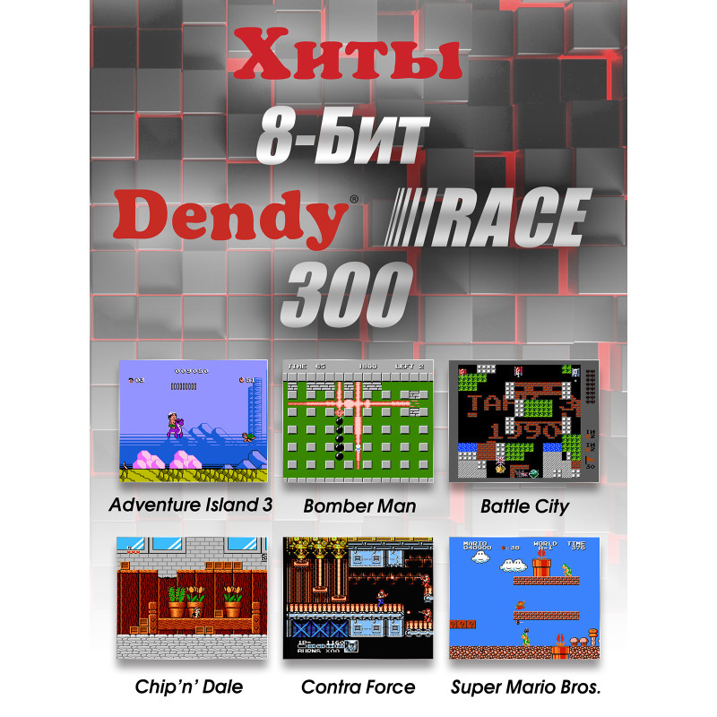 Представляем вам ретро приставку Dendy Race 300 – идеальный способ вернуться в эпоху классических 8-битных игр! Эта компактная консоль предлагает 300 встроенных игр, включая такие хиты, как Super Mario и Contra, что обеспечит часы увлекательного геймплея.