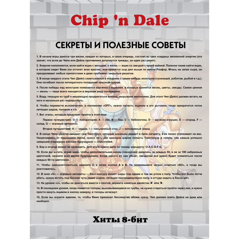 Только полные версии 476 игр и 2 дополнительные версии Battletoads и Battletoads Double Dragon для всех типов приставок. Всего лишь 1 картридж и за игрой можно провести много часов. В сборник вошли игры на одного и двух игроков, игры для пистолета, увлекательные тетрисы, интересные головоломки и логические игры, разрушительные боевики, космические стрелялки, легендарные черепашки, боевые жабы, танчики и множество приключений мультяшных героев. Еще одна особенность – часть игр, включенных в сборник, переведены на русский язык!