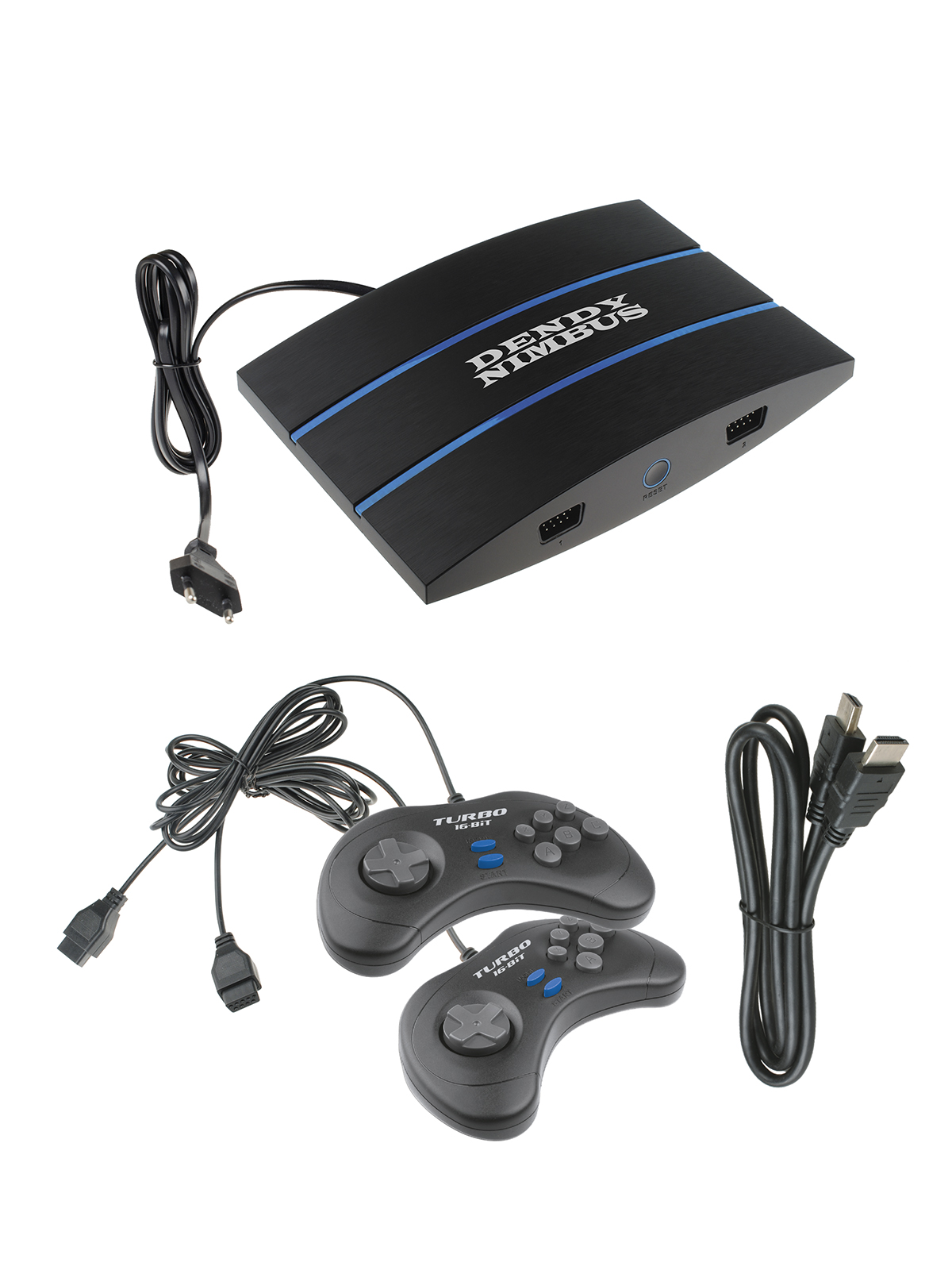 Корпус DENDY NIMBUS дополнен современной светодиодной подсветкой кнопки RESET и двух полос на верхней части корпуса.