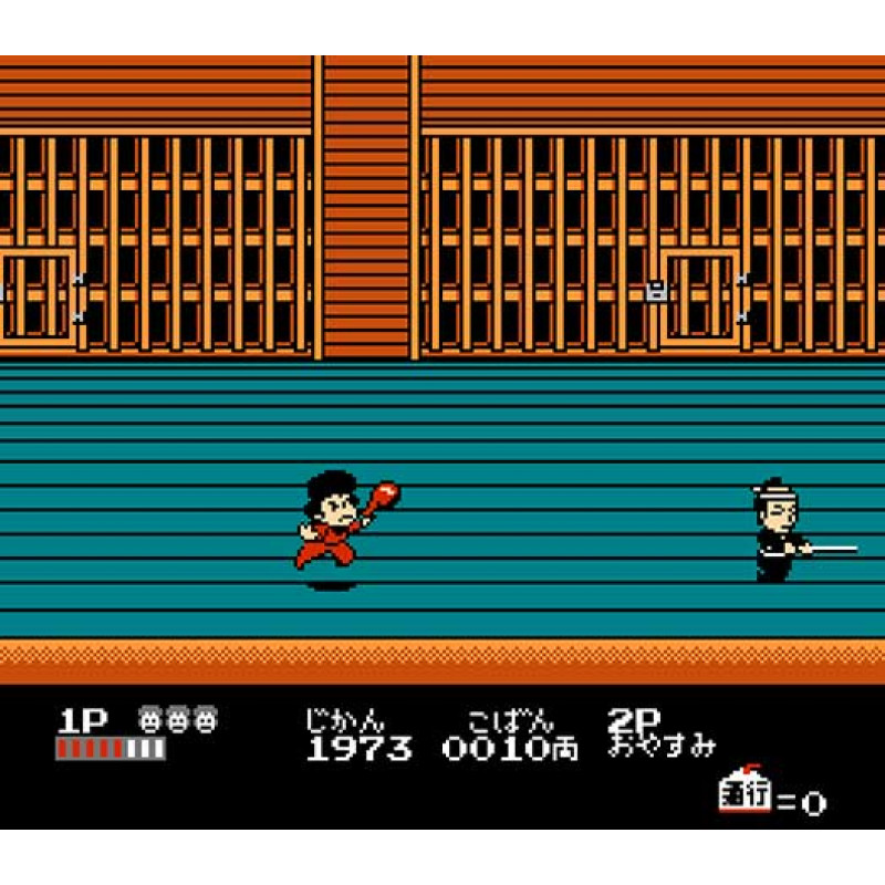 Враги в игре — это не просто стражники, а комичные персонажи: от танцующих демонов до странных торговцев. Сама атмосфера праздника и суматохи выделяет Ganbare Goemon 2 на фоне более мрачных боевиков того времени.