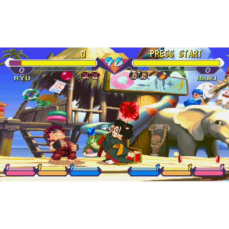 Этот выдающийся, абстрактный и юмористический файтинг объединяет в себе версии культовых игр Capcom, таких как легендарная серия "Street Fighter", а также "Darkstalkers" и менее известная "Red Earth". В процессе сражения игроки обретут возможность собирать цветные драгоценные камни, получаемые благодаря точным попаданиям по оппоненту, а также за счет регулярно появляющихся деревянных ящиков. Накопление этих камней "укрепит" выбранного героя, наделяя его более сокрушительными ударами.